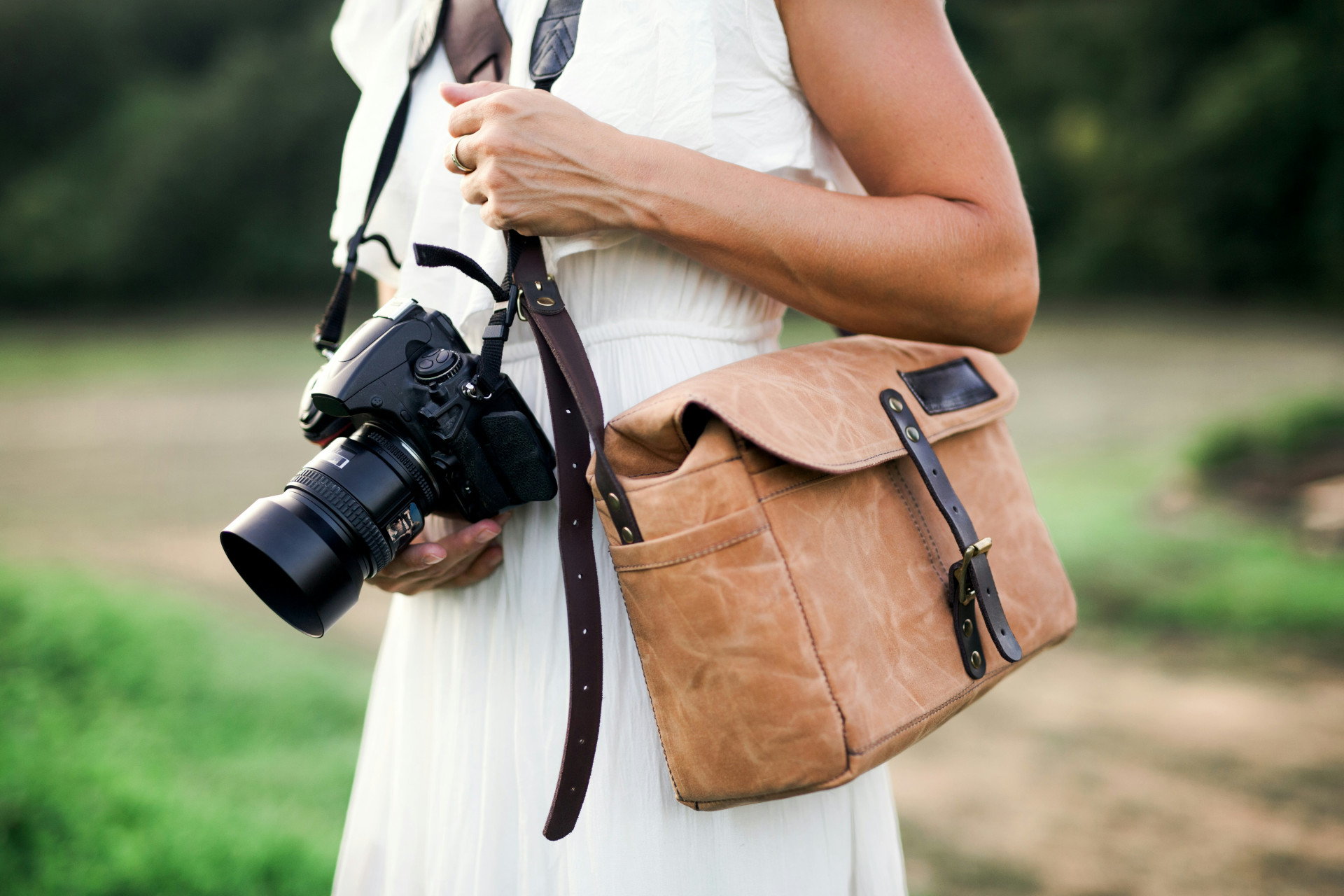 En mindre skuldertaske eller slingbag er ofte et godt valg for begyndere. De giver plads til et kamera og et par objektiver og er nemme at håndtere, når du er på farten.